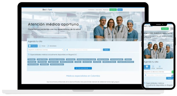 Doctorfynd® es una plataforma digital que facilita la búsqueda y el contacto entre usuarios y profesionales e instituciones de la salud. Todas las especialidades y las mejores instituciones médicas al alcance de millones de usuarios. Todo esto con el fin de obtener un rápido y fácil acceso a citas y consultas médicas con todas las especialidades, citas y servicios odontológicos, centros de toma de exámenes e imágenes diagnósticas y muchos servicios más.